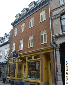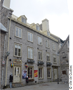 La chronologie d’occupation de cet emplacement nous apprend que les Jésuites font construire entre 1637 et 1640 une cave ou un cellier faisant office de magasin. En 1655, une concession des terrains est faite aux Jésuites. En 1667-1668, le Papier terrier de la Compagnie des Indes occidentales fait état d’un magasin, d’une maison et d’un fournil construits à cet endroit. La maison est détruite par le grand incendie de 1682. En 1761, au lendemain du siège de Québec, Joseph Paradis, marchand français acquiert l’emplacement. La maison a subi plusieurs transformations jusqu’à sa restauration par la Société générale des industries culturelles (SOGIC) en 1991.